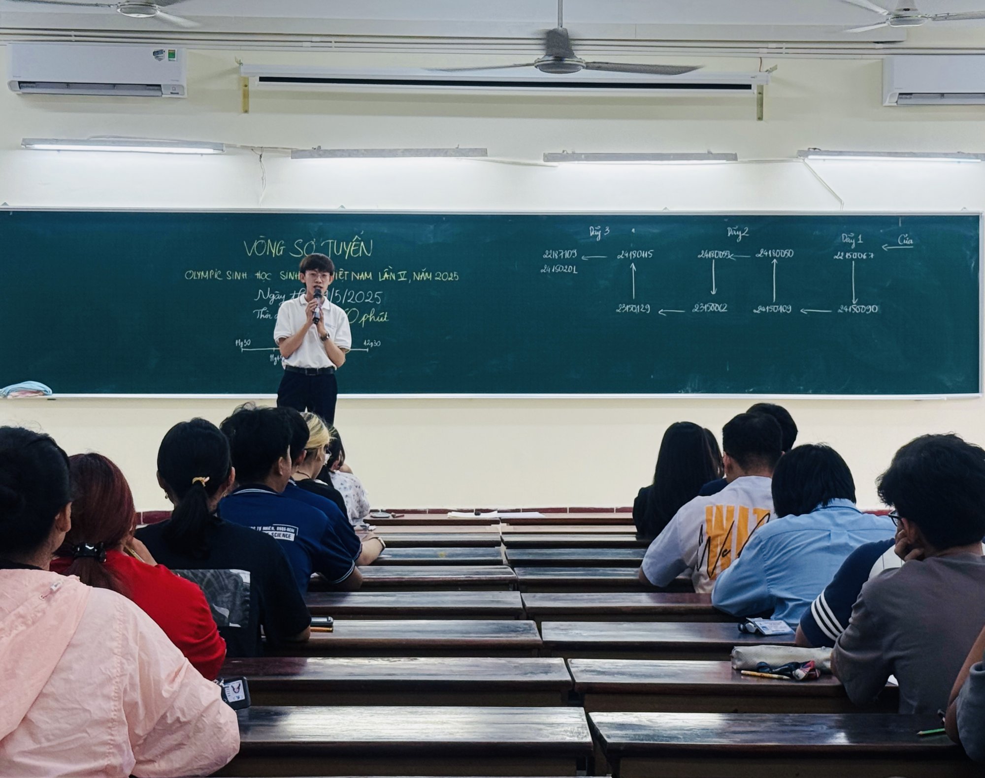 Vòng sơ tuyển lựa chọn đội tuyển đại diện Khoa Sinh học - Công nghệ Sinh học tham dự cuộc thi “Olympic Sinh học Sinh viên Việt Nam” lần V, năm 2025 đã diễn ra vô cùng sôi nổi với sự quan tâm, đăng ký tham gia với hơn 139 Sinh viên tại 2 cơ sở thi vào ngày 19/5/2025 vừa qua. Dẫu thời tiết tại cơ sở Linh Trung có chút bất lợi vì mưa to, nhưng cũng chẳng thể làm chùn đi bước chân và ý chí của các thí sinh đến tham dự vòng thi.
